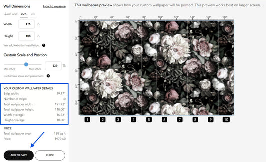 After you've reviewed your wallpaper quantities in the "Your Custom Wallpaper Details" section, click the Add to Cart button.