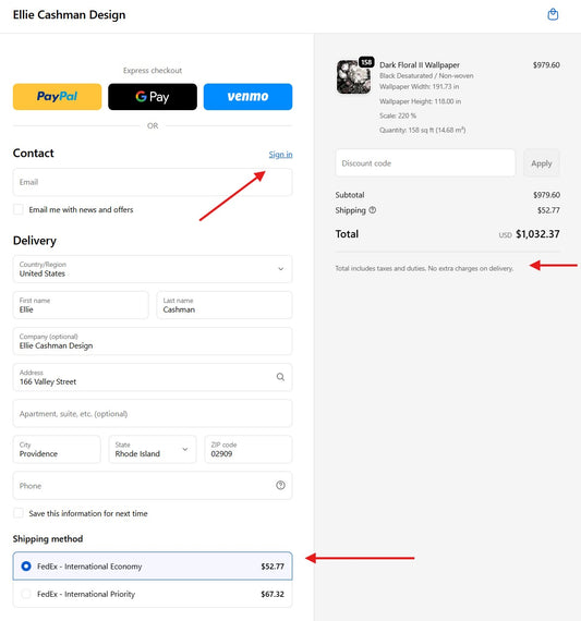 Ordering custom wallpaper from Ellie Cashman Design takes just a few minutes. You'll use our Wallpaper Configurator to select your color and material, enter your wall dimensions, and customize the scale and placement of the design. Once you're happy with your selections, simply add to cart and check out - we'll handle the rest. This page guides you through the entire process.