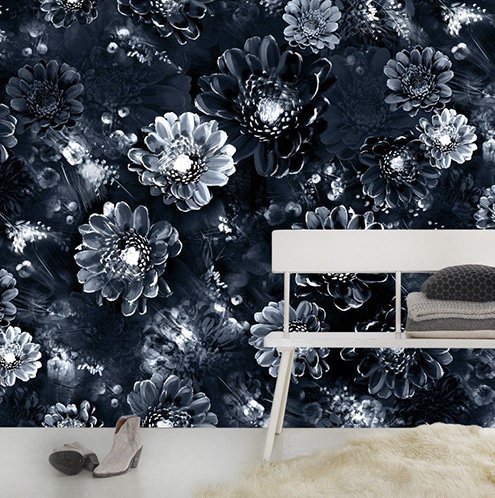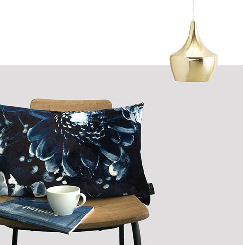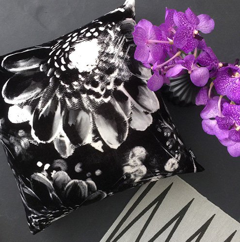 My Moonlight Meadow floral fabrics feature a loosely, gesturally-painted floral print that evokes a sense of energy and excitement. Imagine an evening walk under an inky, starry sky, to a meadow of wonder and delight, a place where your intentions are clear and your dreams within reach. Our Moonlight Meadow floral fabric comes in both blue and black. The enlarged canvas texture in the print forms an unexpected combination with the soft, sumptuous velvet fabric.