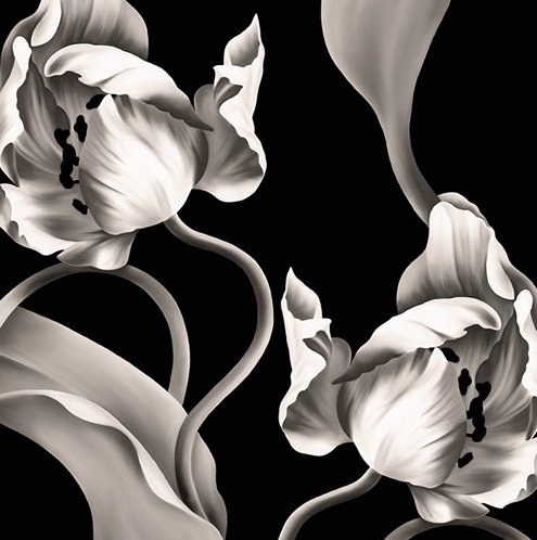 Twisting Tulips White on Heavy Cotton Fabric