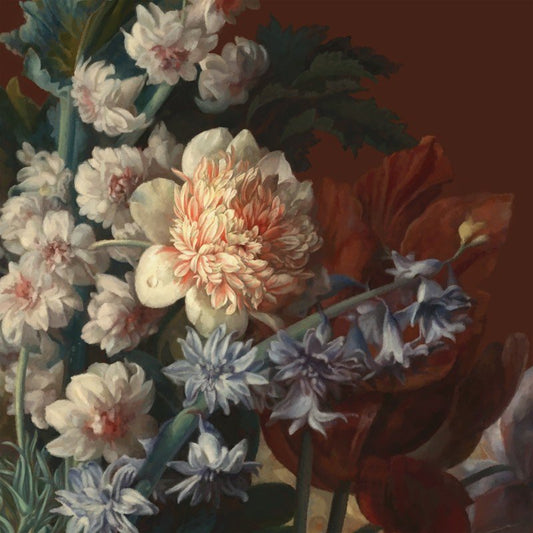 I love the gestures of the different flowers in the bouquet. They are so active and alive, absolutely thrusting themselves into bloom, as if it’s a matter of life and death. Four different background colors - each so rich, deep, dark and dramatic, as well as its scalability, make this an easy design to customize to your space.