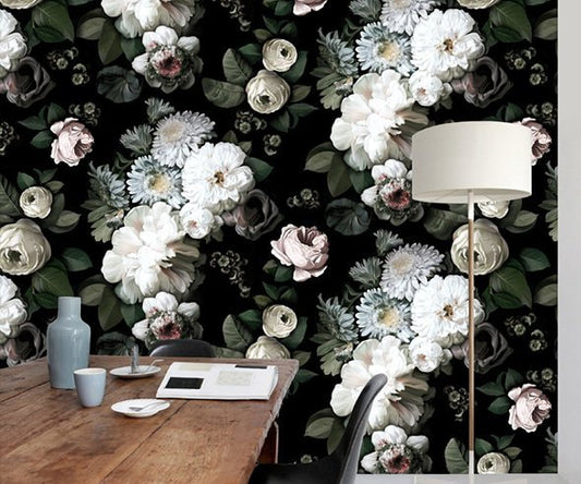 ‘Dark Floral’ has a classic elegance, a dose of drama and romance, and a three-dimensional effect that gives depth to any space. It also has an incredibly versatile color palette.