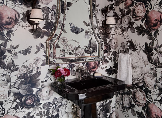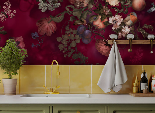 Inspired by a conversation between Ellie and her close friend and designer Cecilia Casagrande while traveling through France, Dark Botanical was imagined as a wallpaper that could bring the richness of still-life paintings into spaces like kitchens, dining rooms, and beyond. They envisioned a design where fruits, flowers, and nature’s tiniest creatures intertwine, evoking the beauty of a flourishing garden, captured at its peak.