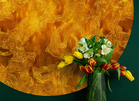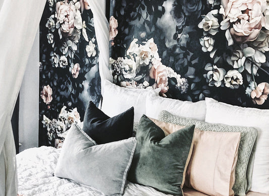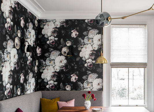 Close up, ‘Dark Floral’ has many painterly details; from a distance; the effect is almost photographic. The soft transitions between dark and light create a stunning three-dimensional blurry effect, bringing depth to any space.